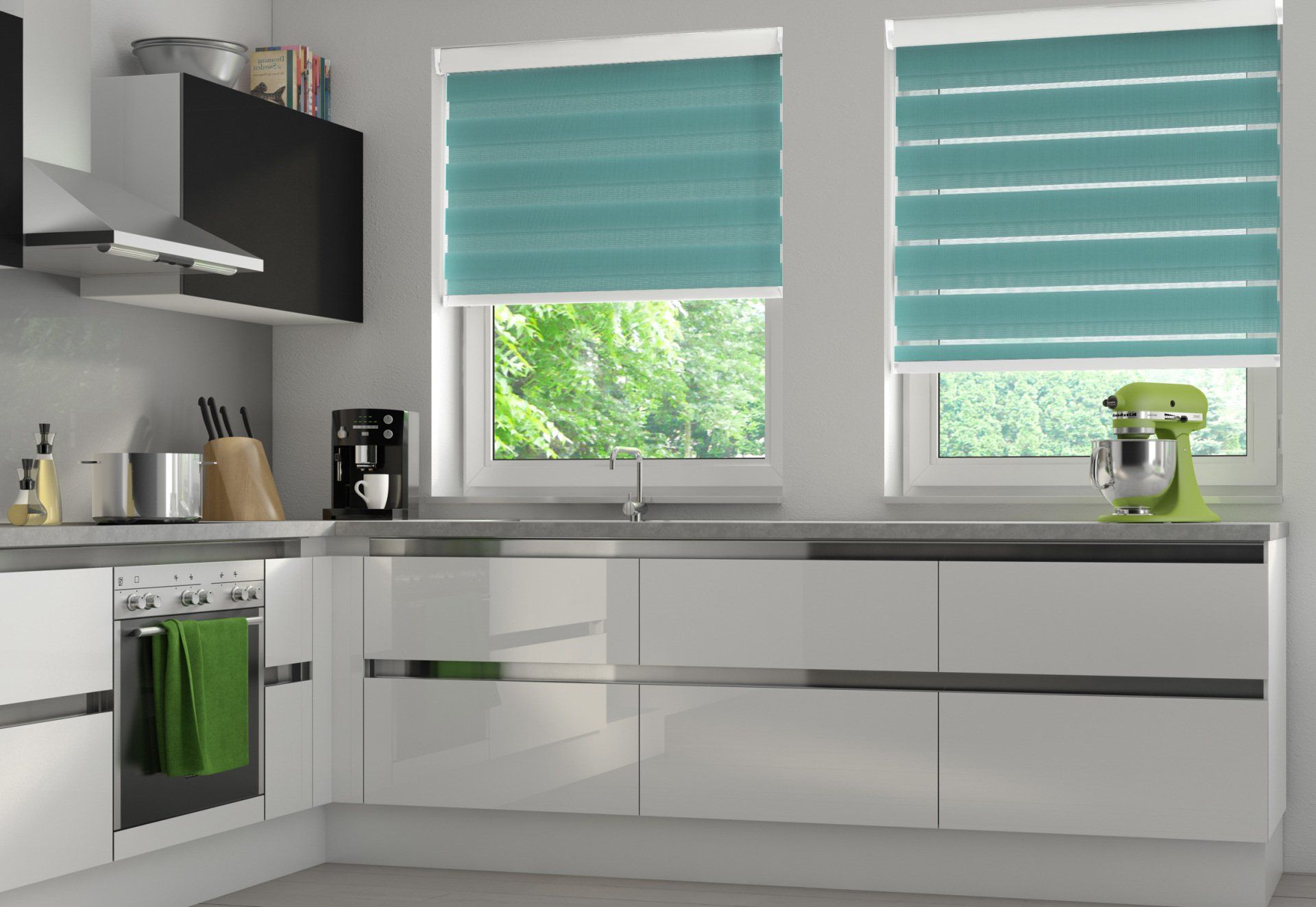 One notable aspect of a roller blind is that it is either up or down, or somewhere in between. However our mirage range rewrites that. Featuring alternating strips of transparent mesh and opaque fabric, the mirage blind adds a level of shade control previously only available from traditional venetian blinds. Mirage blinds, also known in the marketplace as a day and night blinds, feature strips which can be aligned to allow light through or to block it out, all using the simple single control chain or integrated motor.